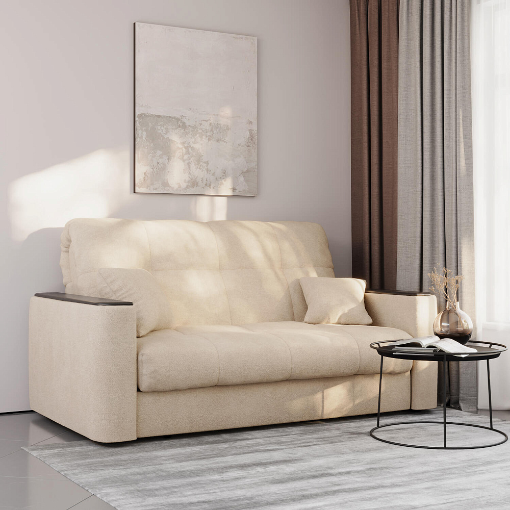 Диван «Камелот» — лучшее сочетание удобства, компактности и функциональности в классическом стиле. Модель в лаконичном дизайне поможет оформить уютную и удобную зону для сна и отдыха в небольших гостиных, спальнях или детских комнатах. Изюминкой модели являются деревянные накладки на подлокотниках, на которых можно разместить пульт от телевизора или чашку чая. Диван создаст в комнате комфортную обстановку и придаст ей неповторимый вид.