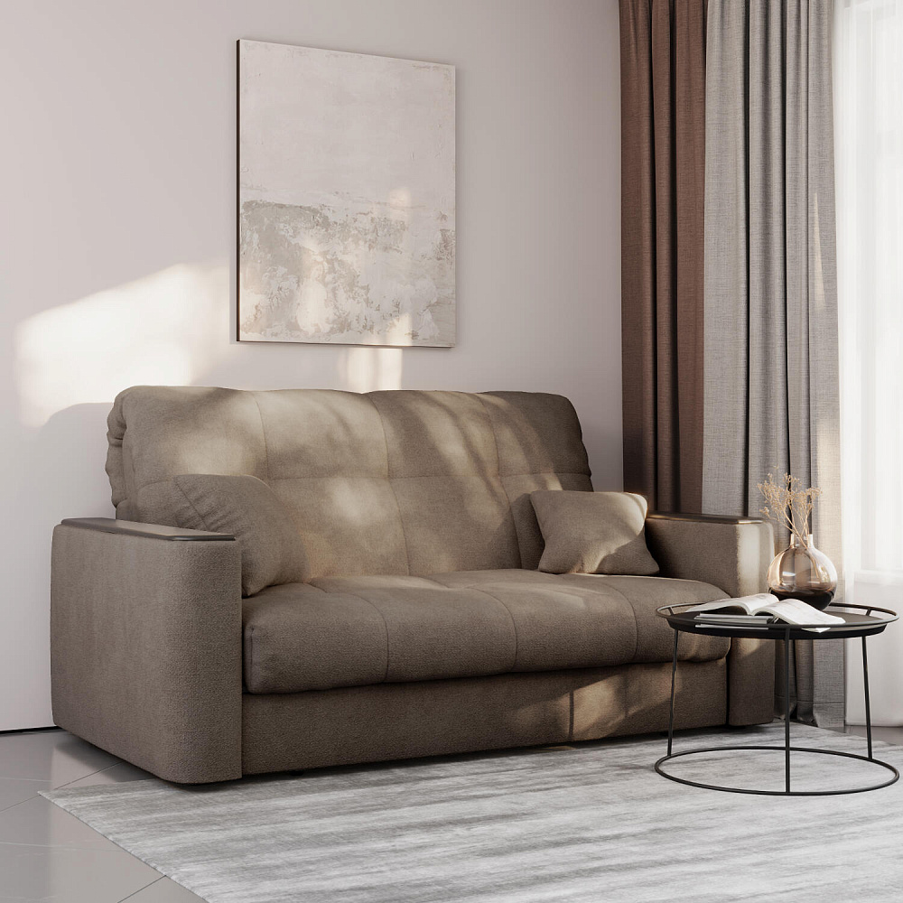 Диван «Камелот» — лучшее сочетание удобства, компактности и функциональности в классическом стиле. Модель в лаконичном дизайне поможет оформить уютную и удобную зону для сна и отдыха в небольших гостиных, спальнях или детских комнатах. Изюминкой модели являются деревянные накладки на подлокотниках, на которых можно разместить пульт от телевизора или чашку чая. Диван создаст в комнате комфортную обстановку и придаст ей неповторимый вид.
