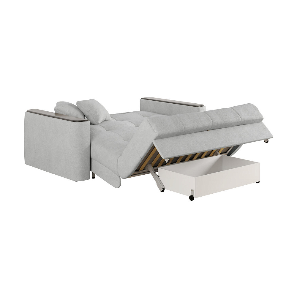 - Размер спального места — 147 х 200 см. Полноценная кровать подойдёт для комфортного сна на каждый день.