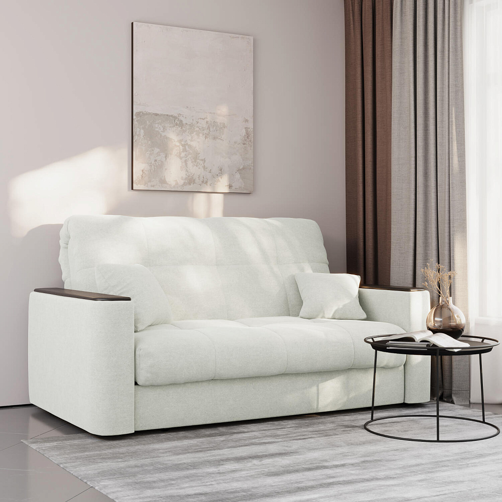 Диван «Камелот» — лучшее сочетание удобства, компактности и функциональности в классическом стиле. Модель в лаконичном дизайне поможет оформить уютную и удобную зону для сна и отдыха в небольших гостиных, спальнях или детских комнатах. Изюминкой модели являются деревянные накладки на подлокотниках, на которых можно разместить пульт от телевизора или чашку чая. Диван создаст в комнате комфортную обстановку и придаст ей неповторимый вид.