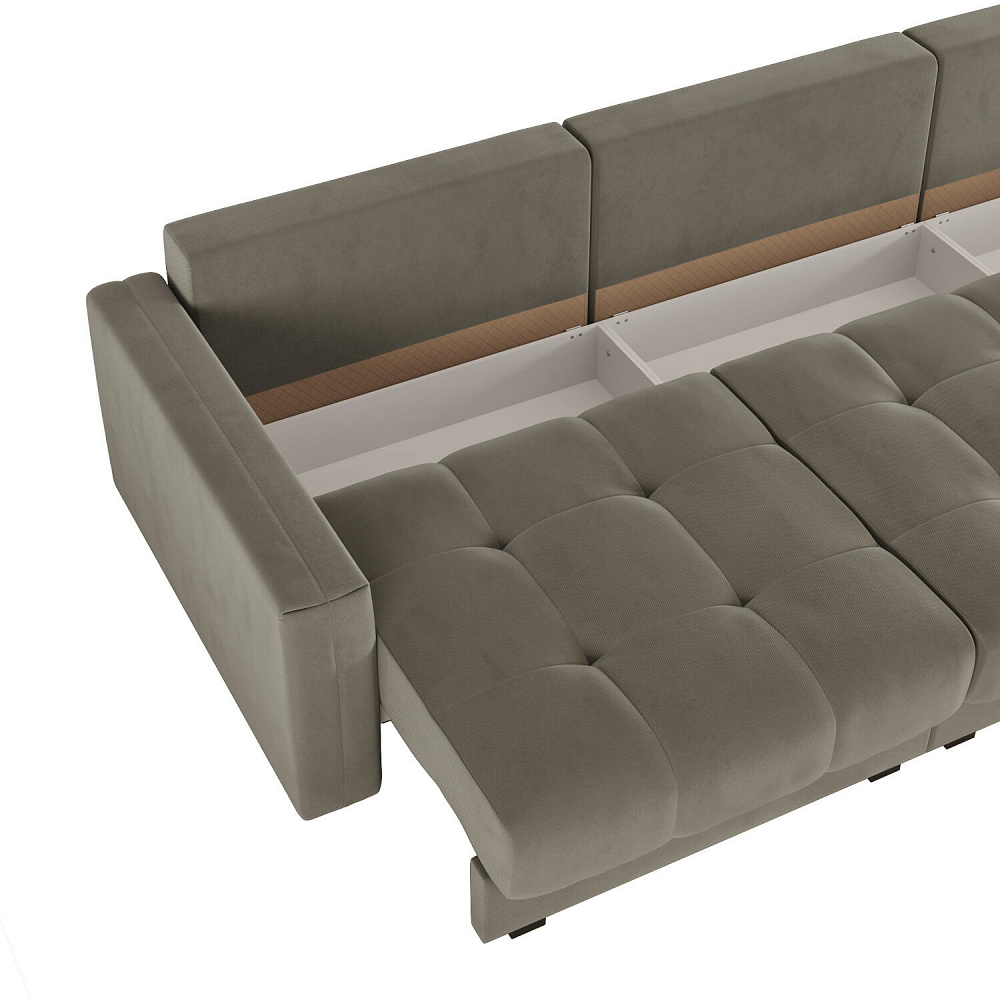 - Размер спального места — 300 х 167 см. Диван легко трансформируется в полноценное двуспальное место.