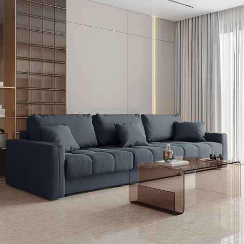 Диван «Дензел» — лучший вариант для ценителей комфорта в сочетании со стильным дизайном. Диван обладает глубокой посадкой, а приспинные и декоративные подушки позволят создать самое удобное место для отдыха. Спинка дивана выполнена в той же обивке, что и основная часть, что даёт возможность использовать диван для зонирования комнаты.
