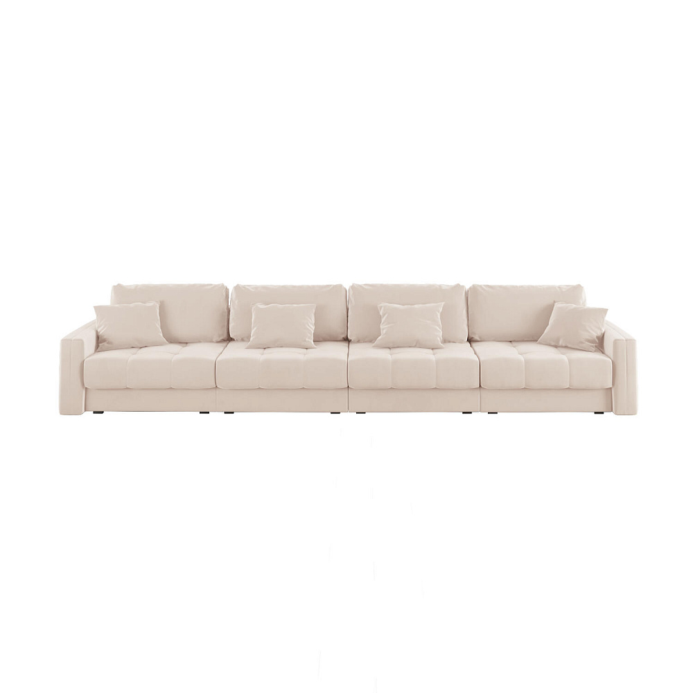 - Два вида подушек. В комплектацию дивана входят четыре приспинные и четыре декоративные подушки, которые позволяют удобно корректировать глубину посадки.