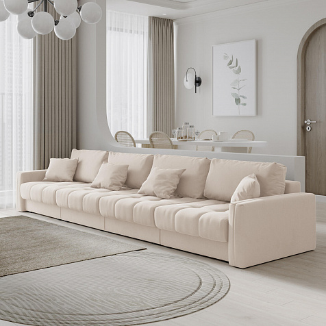 Диван «Дензел» — лучший вариант для ценителей комфорта в сочетании со стильным дизайном. Диван обладает глубокой посадкой, а приспинные и декоративные подушки позволят создать самое удобное место для отдыха. Спинка дивана выполнена в той же обивке, что и основная часть, что даёт возможность использовать диван для зонирования комнаты.