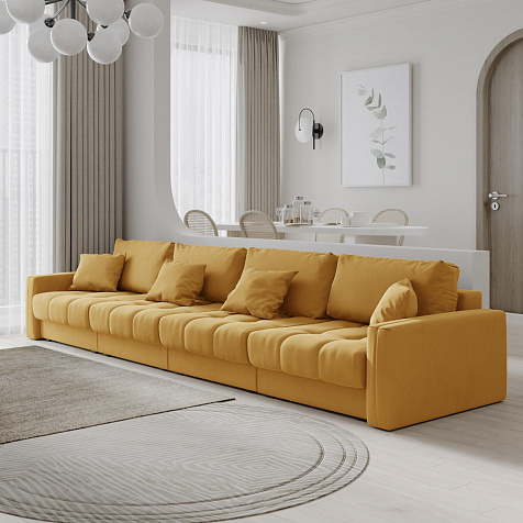 Диван «Дензел» — лучший вариант для ценителей комфорта в сочетании со стильным дизайном. Диван обладает глубокой посадкой, а приспинные и декоративные подушки позволят создать самое удобное место для отдыха. Спинка дивана выполнена в той же обивке, что и основная часть, что даёт возможность использовать диван для зонирования комнаты.