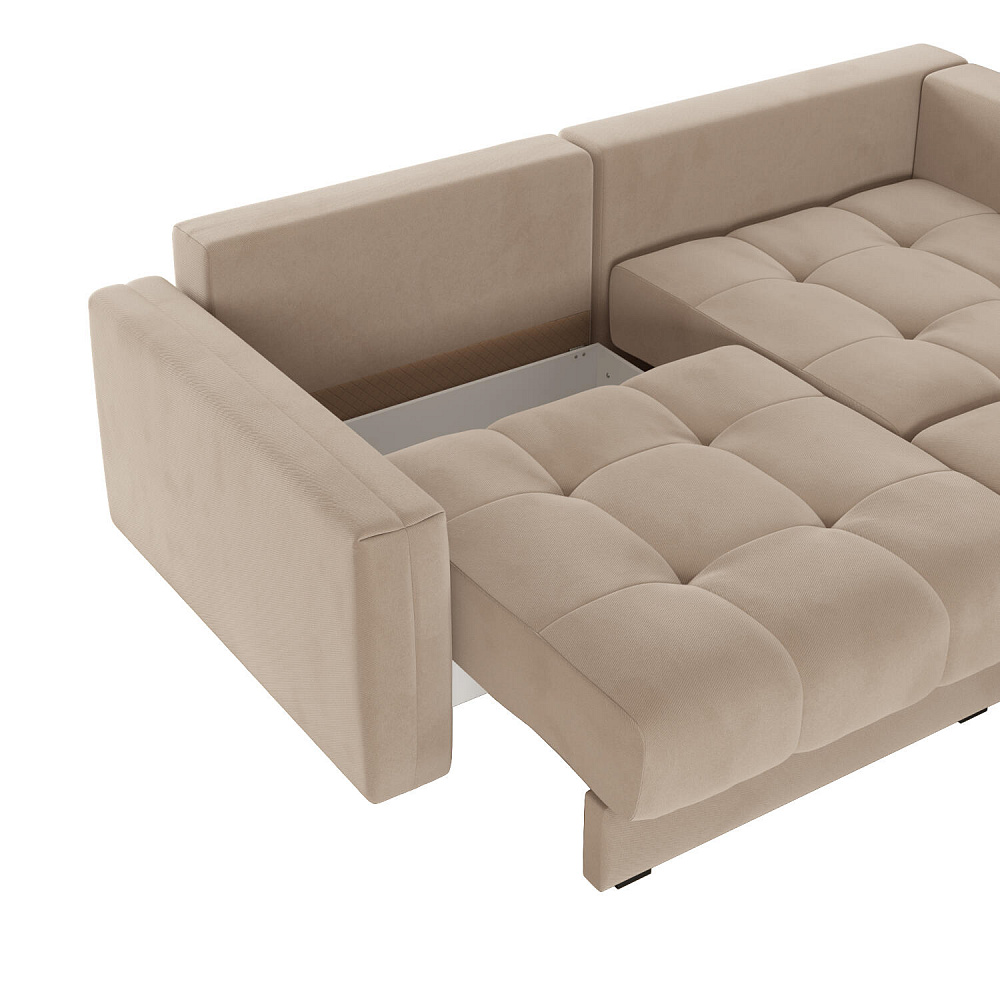 - Размер спального места — 300 х 160 см. Диван легко трансформируется в полноценное двуспальное место.