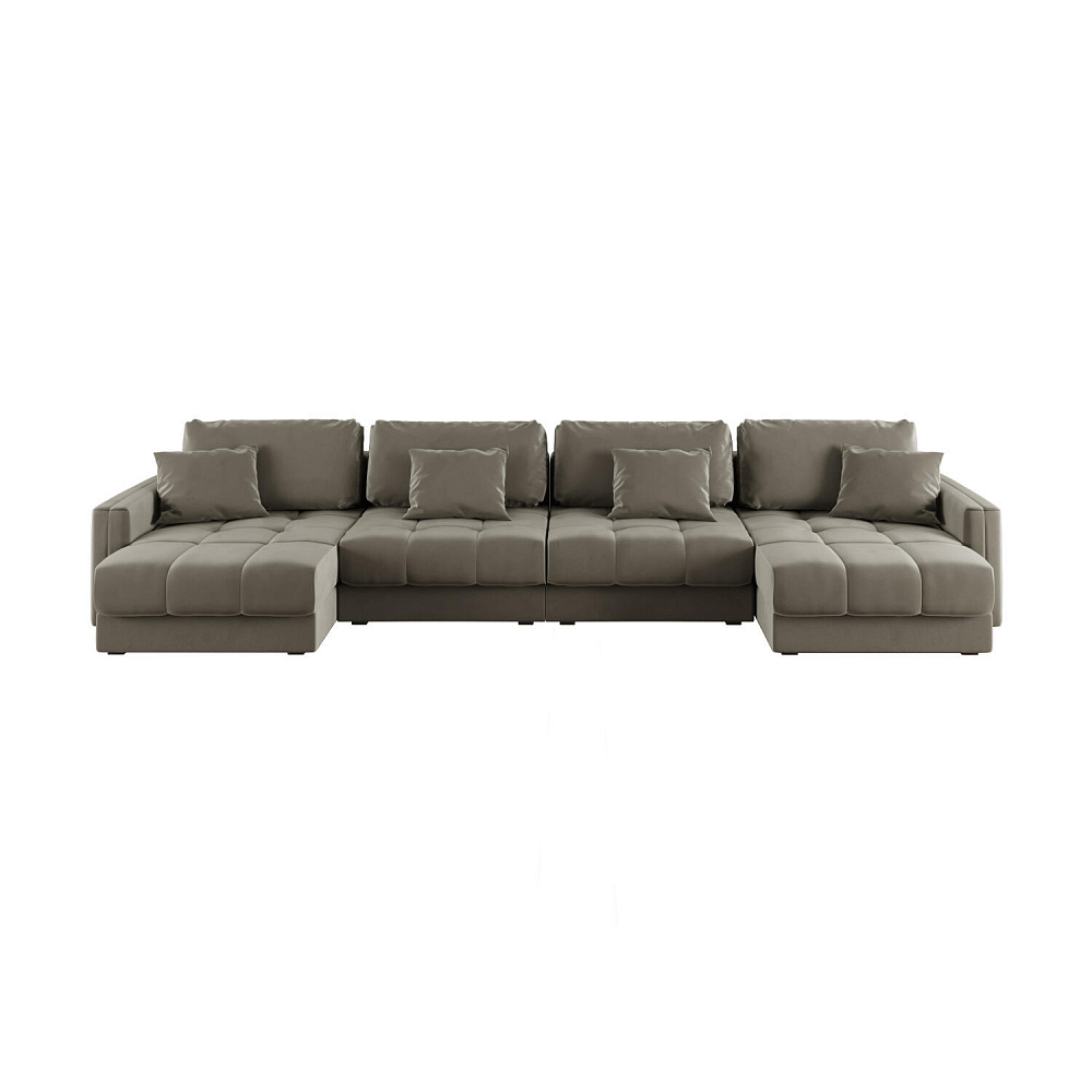 П-образный угловой диван «Дензел» — лучший вариант для ценителей комфорта и удобства в сочетании со стильным дизайном. Диван обладает глубокой посадкой, а приспинные и декоративные подушки позволят создать удобное место для отдыха. Угловая модель с двумя оттоманками займёт своё идеальное место в пространстве комнаты или студии. Спинка модели выполнена в обивочной ткани, что даёт возможность использовать диван для зонирования комнаты.