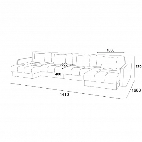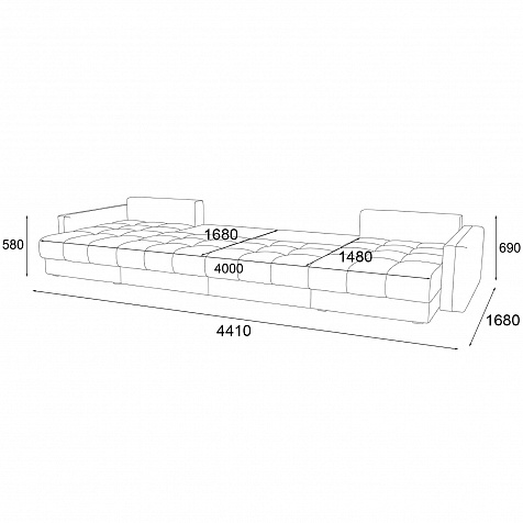 Спальное место основной части/оттоманки: 400 х 167/147 см.