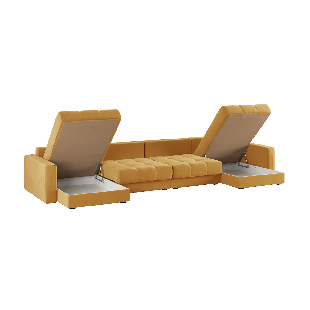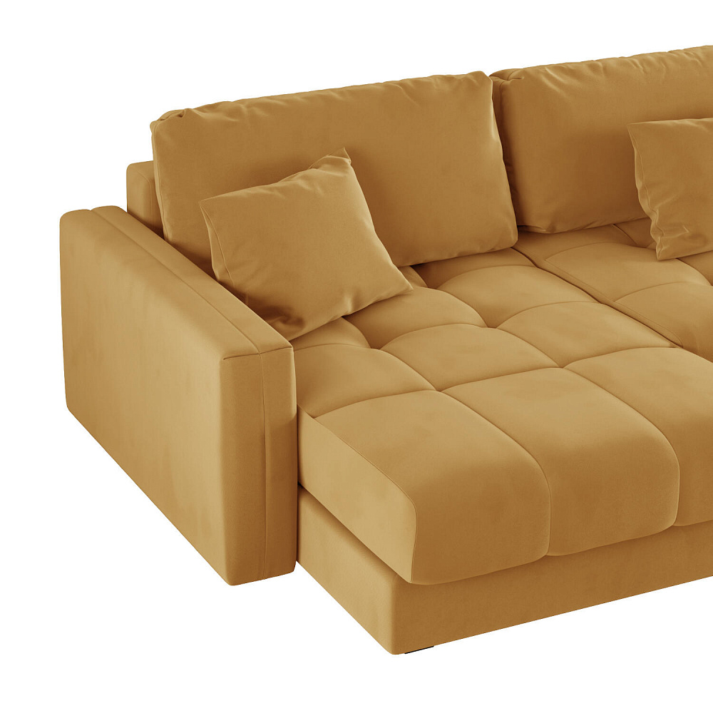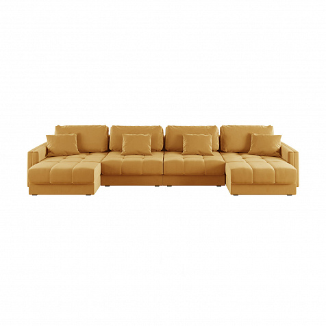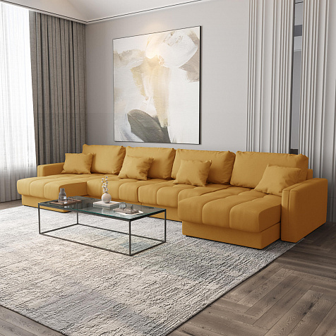 П-образный угловой диван «Дензел» — лучший вариант для ценителей комфорта и удобства в сочетании со стильным дизайном. Диван обладает глубокой посадкой, а приспинные и декоративные подушки позволят создать удобное место для отдыха. Угловая модель с двумя оттоманками займёт своё идеальное место в пространстве комнаты или студии. Спинка модели выполнена в обивочной ткани, что даёт возможность использовать диван для зонирования комнаты.