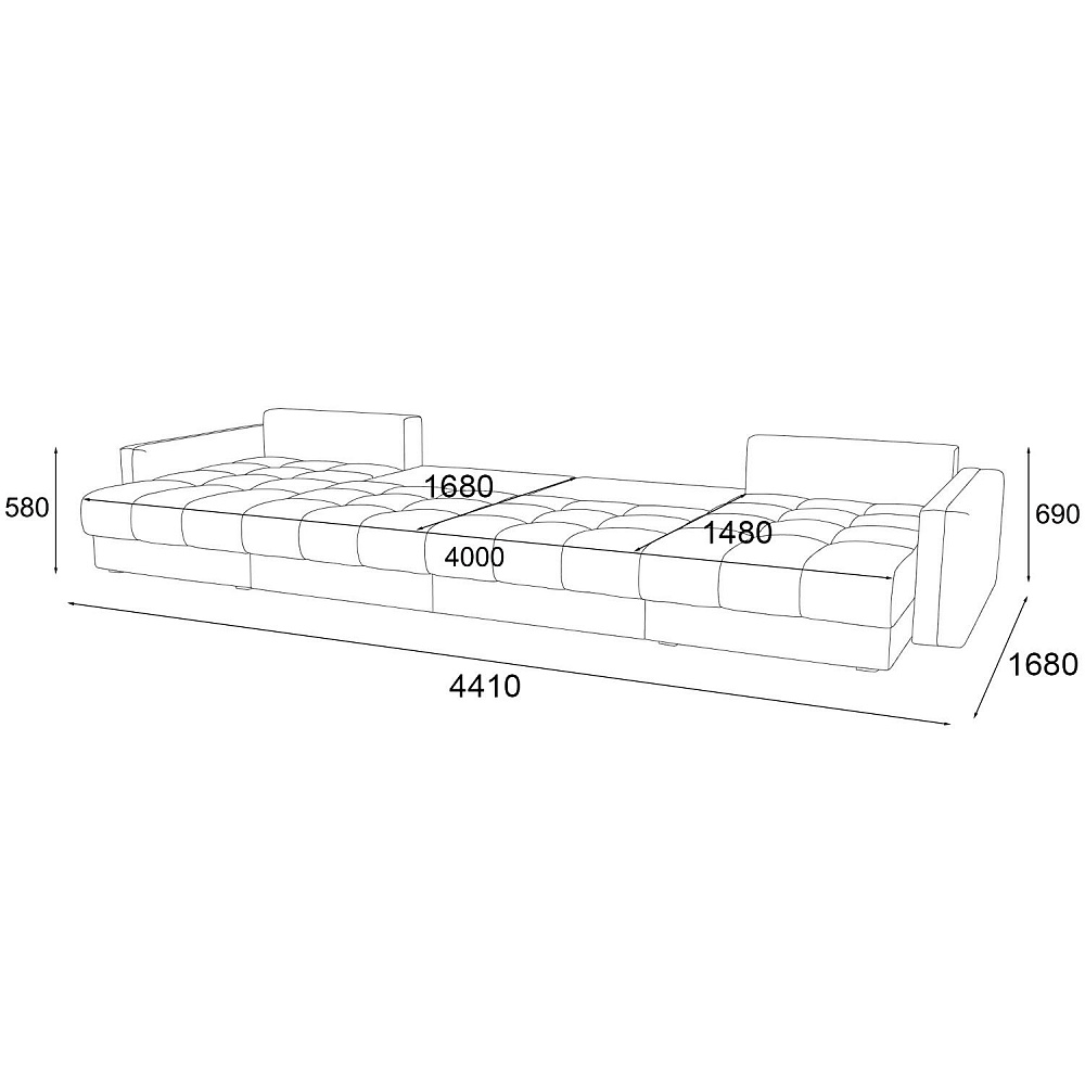 - Размер спального места — 400 х 167 см. Диван легко трансформируется в широкое спальное место для комфортного сна и отдыха двух человек.