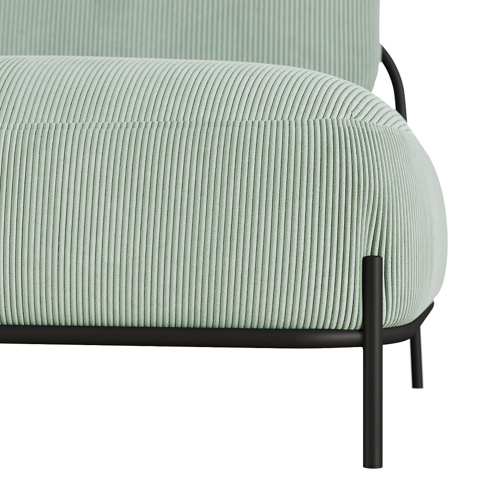 Двухместный диван «Луффи» — оригинальная модель, которая украсит любую комнату в современном стиле. Контрастное сочетание мягких форм и тонких металлических опор поможет создать уютную и легкую зону отдыха. Задняя часть спинки выполнена в обивочной ткани, что позволяет разместить диван в центре комнаты.