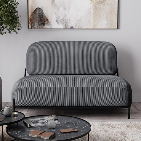 Двухместный диван «Луффи» — оригинальная модель, которая украсит любую комнату в современном стиле. Контрастное сочетание мягких форм и тонких металлических опор поможет создать уютную и легкую зону отдыха. Задняя часть спинки выполнена в обивочной ткани, что позволяет разместить диван в центре комнаты.