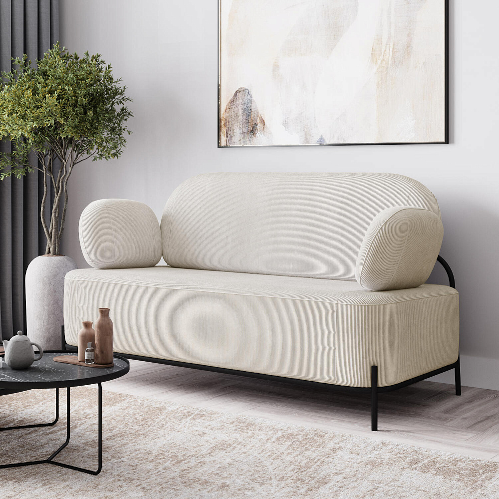 Двухместный диван «Луффи» с подлокотниками — это находка для ценителей оригинальных решений в интерьере. Контрастное сочетание мягких форм и тонких металлических опор поможет создать уютную и легкую зону отдыха. Задняя часть спинки выполнена в обивочной ткани, что позволяет разместить диван в центре комнаты для зонирования пространства.