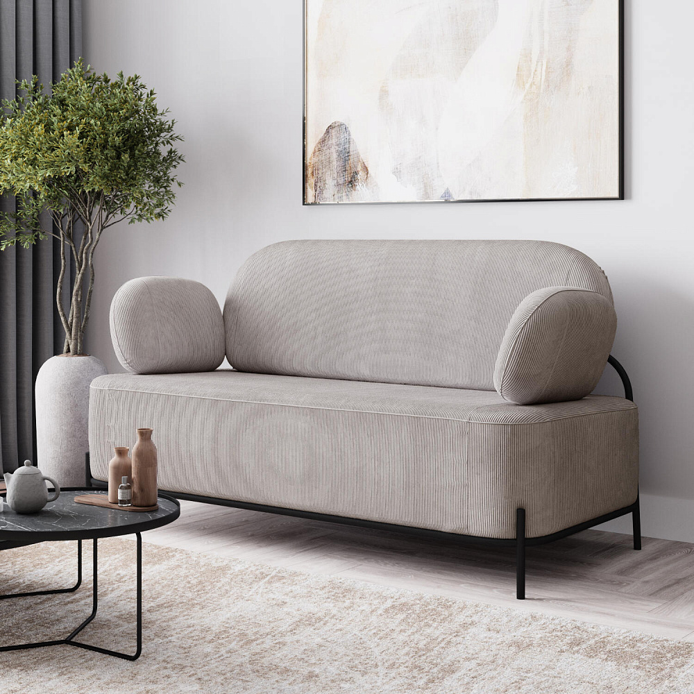 Двухместный диван «Луффи» с подлокотниками — это находка для ценителей оригинальных решений в интерьере. Контрастное сочетание мягких форм и тонких металлических опор поможет создать уютную и легкую зону отдыха. Задняя часть спинки выполнена в обивочной ткани, что позволяет разместить диван в центре комнаты для зонирования пространства.