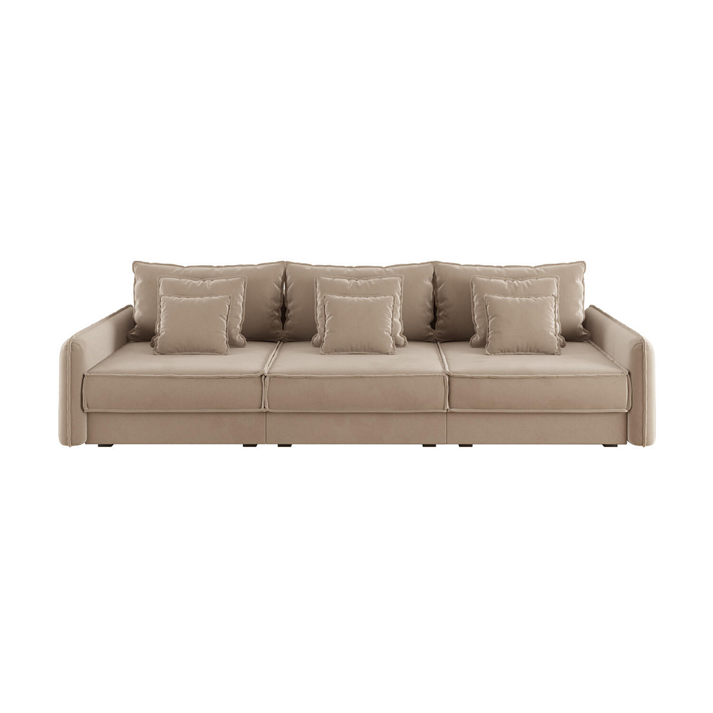 - Девять подушек в комплекте. 3 приспинных и 6 декоративных подушек разных размеров позволят скорректировать глубину посадки.