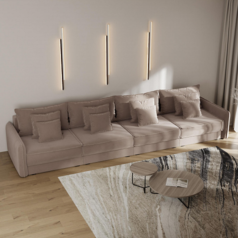 - 12 подушек в комплекте. 4 приспинных и 8 декоративных подушек разных размеров позволят скорректировать глубину посадки.