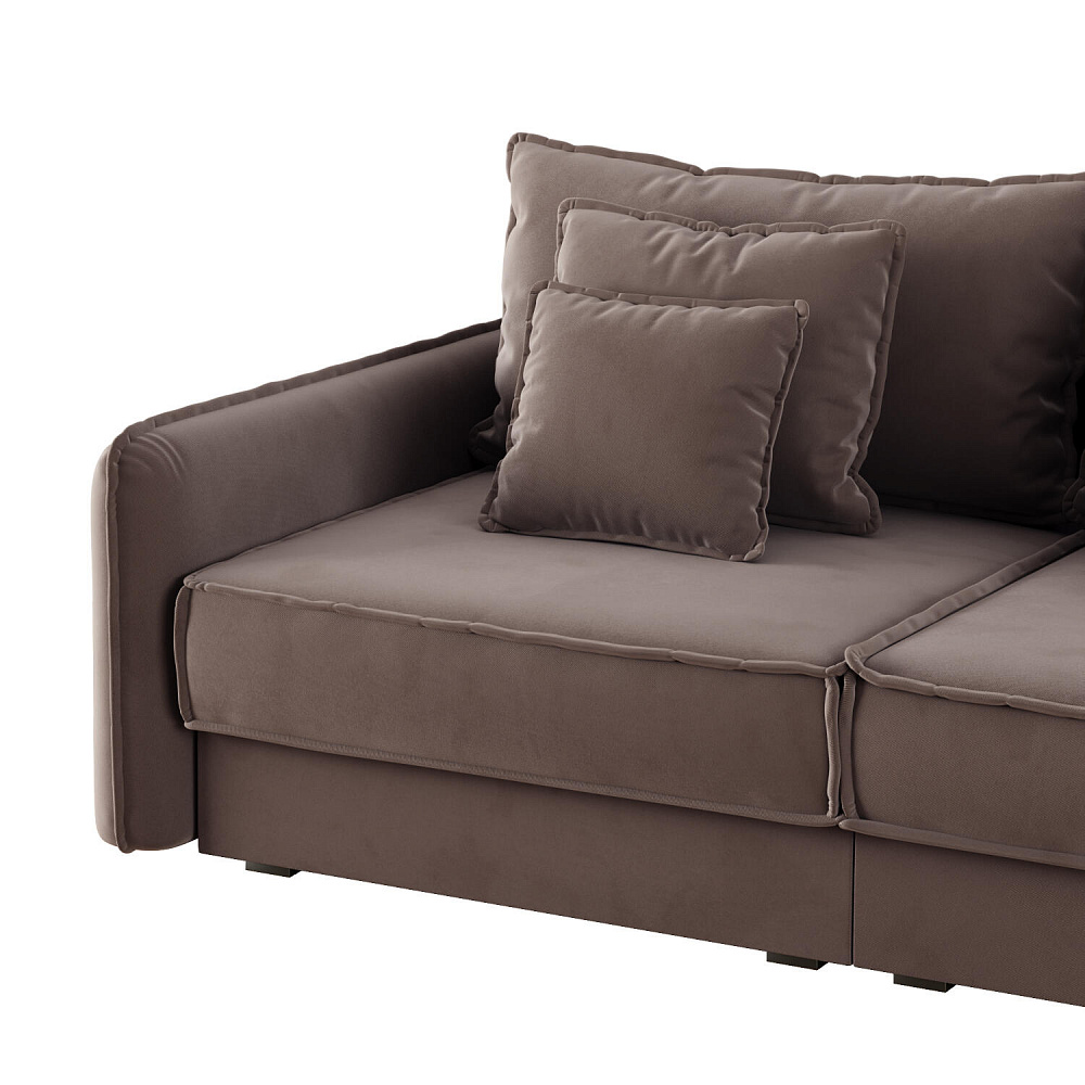 - Девять подушек в комплекте. 3 приспинных и 6 декоративных подушек разных размеров позволят скорректировать глубину посадки.