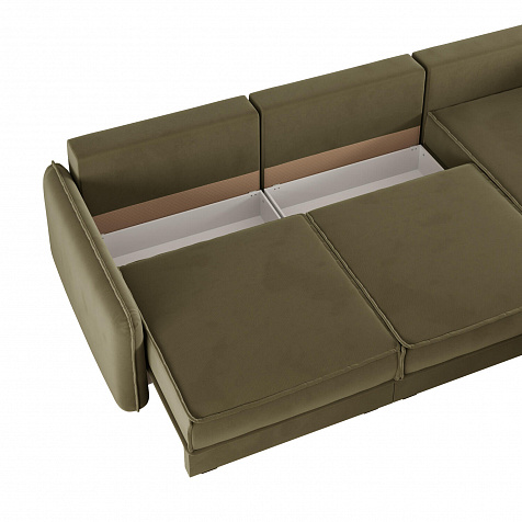 - Три короба для белья. В каждой секции и оттоманке предусмотрен вместительный короб для хранения постельного белья и других вещей.