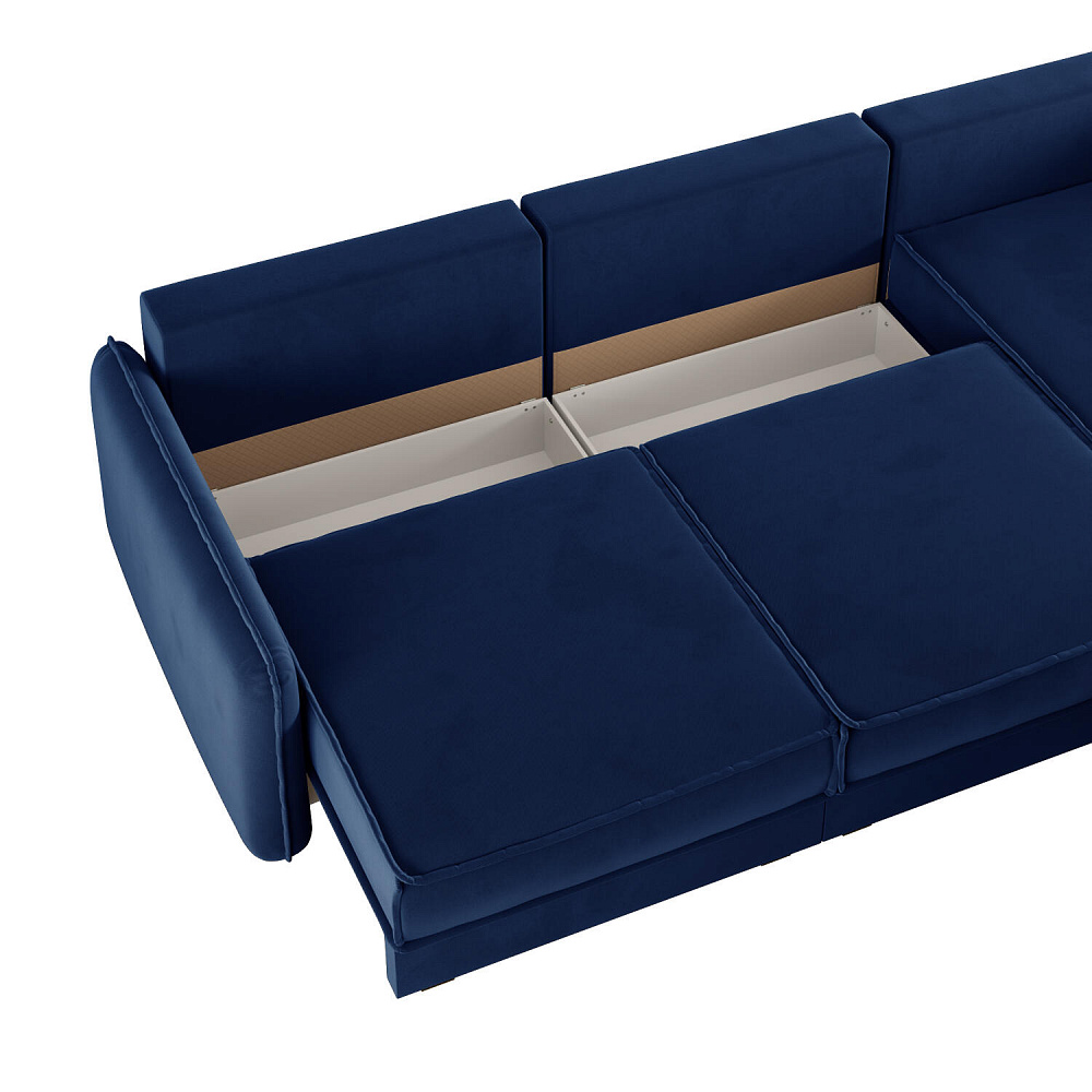 - Три короба для белья. В каждой секции и оттоманке предусмотрен вместительный короб для хранения постельного белья и других вещей.