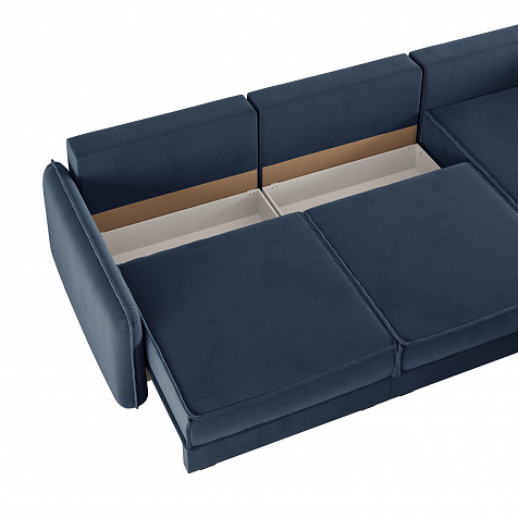 - Три короба для белья. В каждой секции и оттоманке предусмотрен вместительный короб для хранения постельного белья и других вещей.