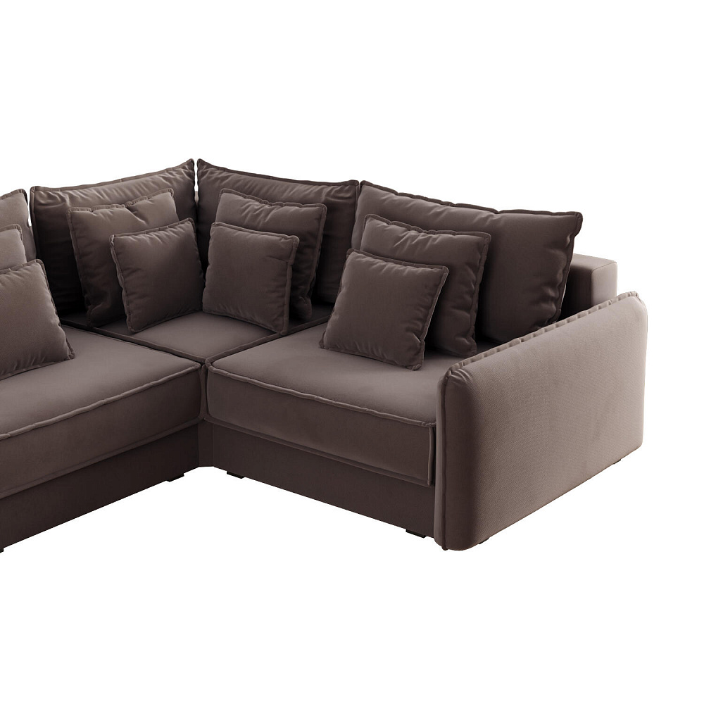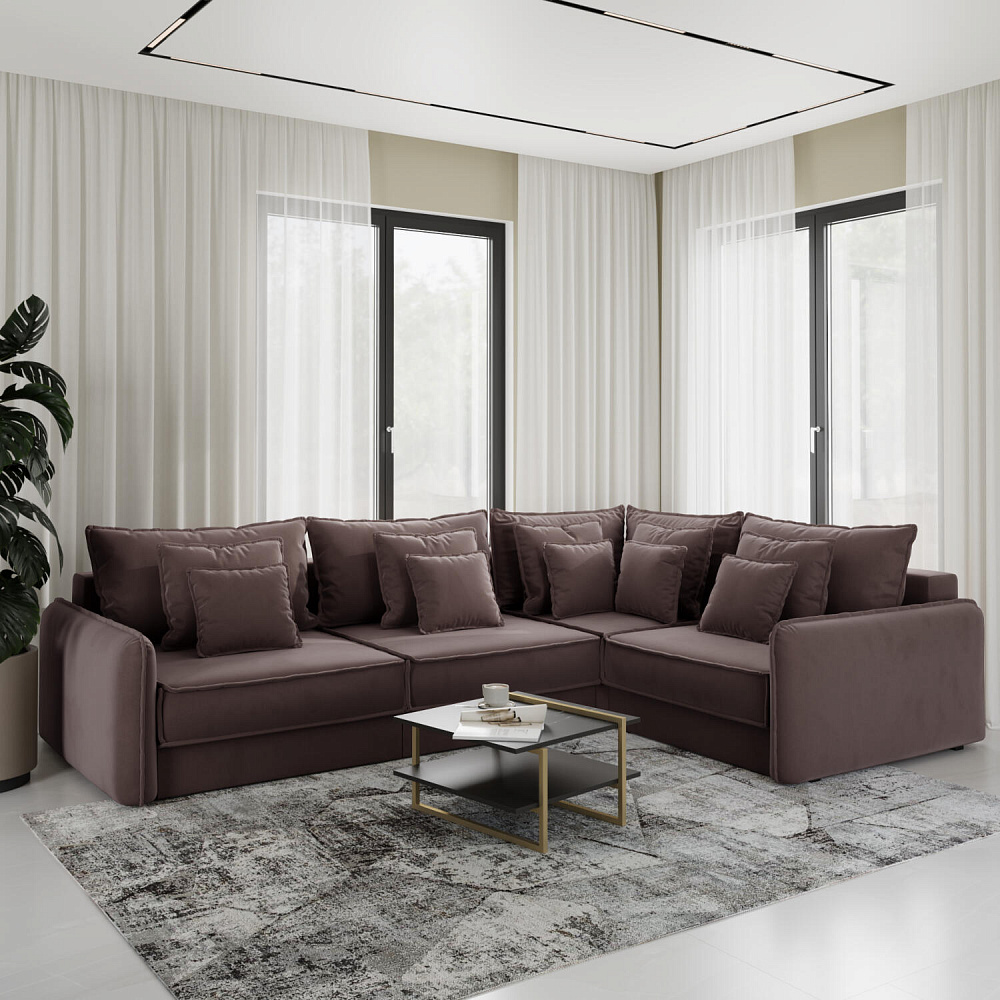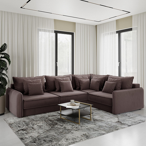 - 15 подушек в комплекте. 5 приспинных и 10 декоративных подушек разных размеров позволят скорректировать глубину посадки.