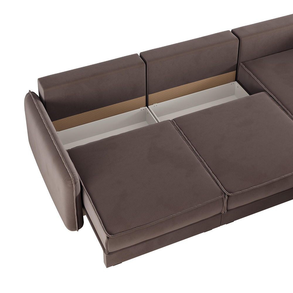- Три короба для белья. В диванных секциях предусмотрены вместительные коробы для хранения постельного белья и других вещей.