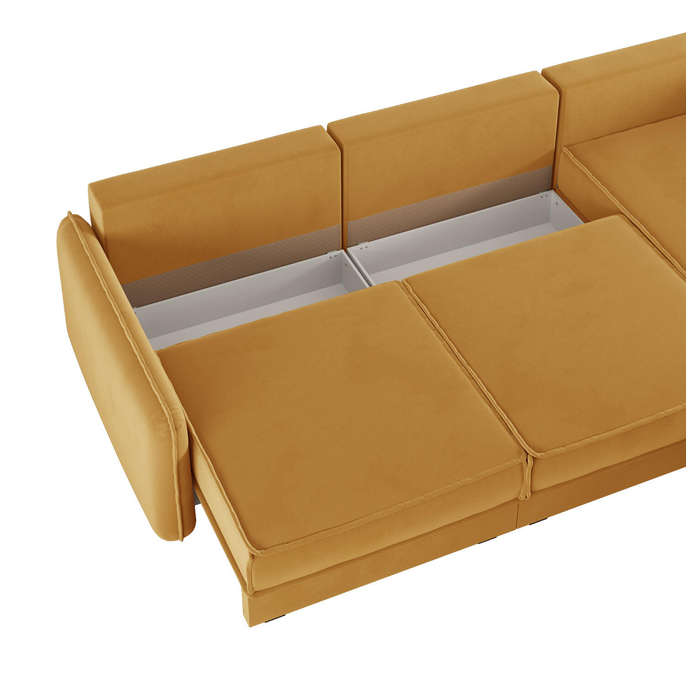 - Три короба для белья. В диванных секциях предусмотрены вместительные коробы для хранения постельного белья и других вещей.