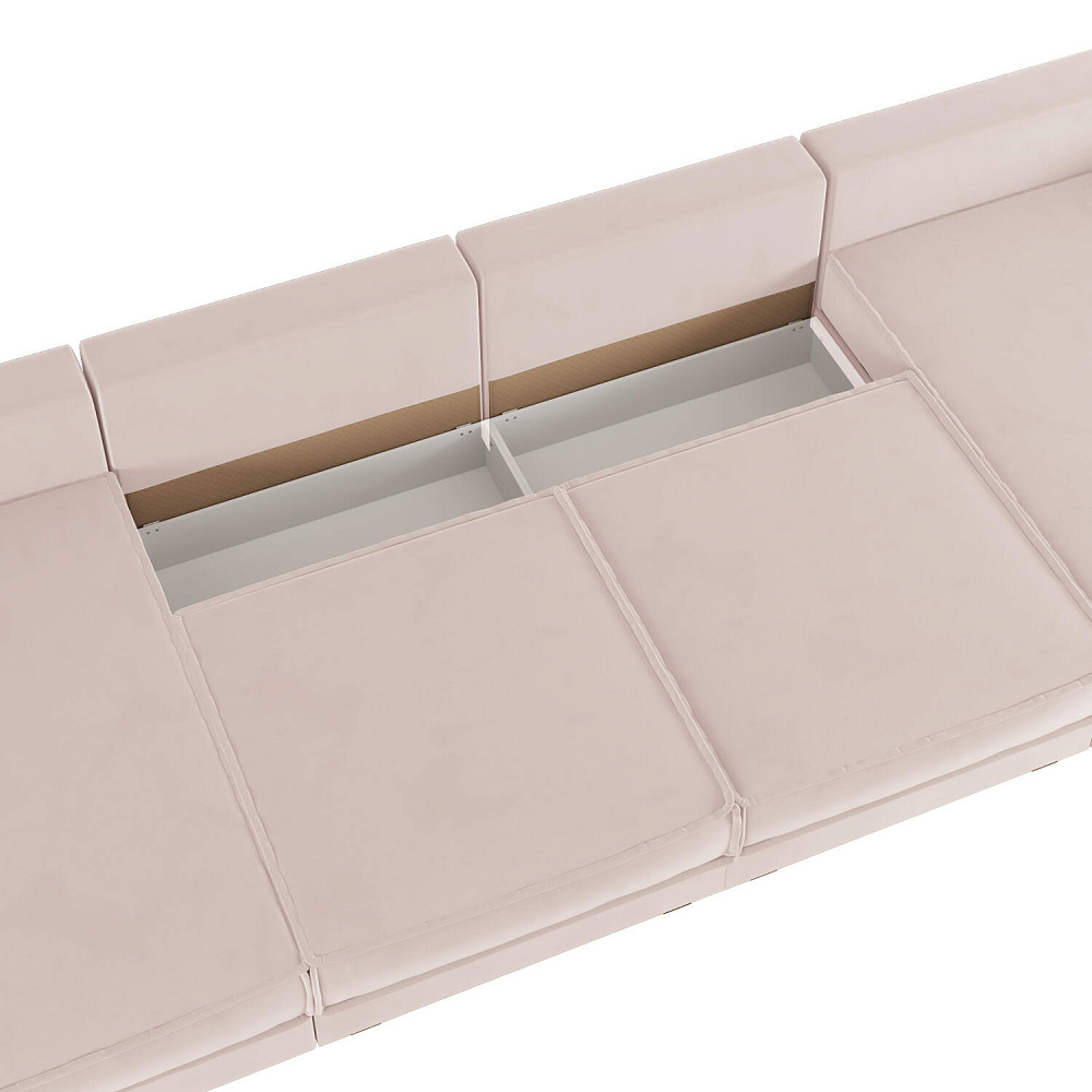 - 4 короба для белья. В диванных секциях и оттоманках предусмотрены вместительные коробы для хранения постельного белья и других вещей.