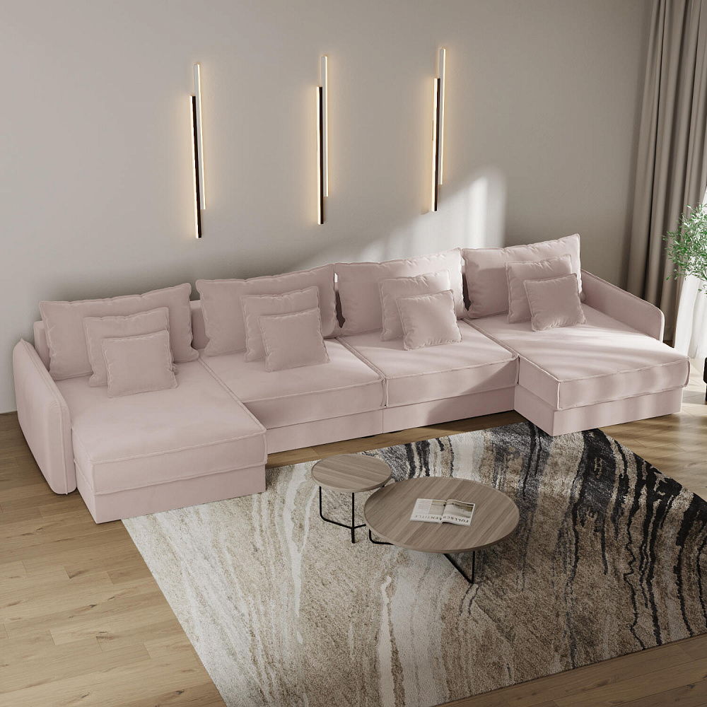 - 12 подушек в комплекте. 4 приспинных и 8 декоративных подушек разных размеров позволят скорректировать глубину посадки.