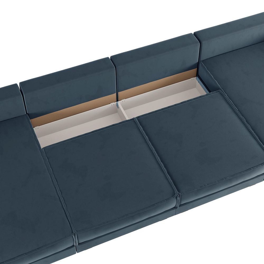 - 4 короба для белья. В диванных секциях и оттоманках предусмотрены вместительные коробы для хранения постельного белья и других вещей.