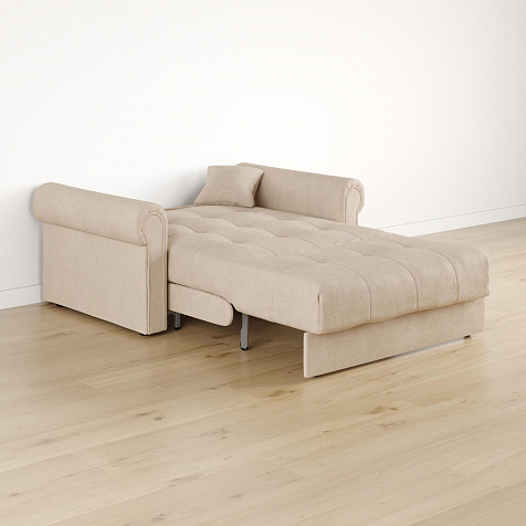 - Размер спального места — 127 х 204 см. Полноценная кровать подойдёт для комфортного сна на каждый день.