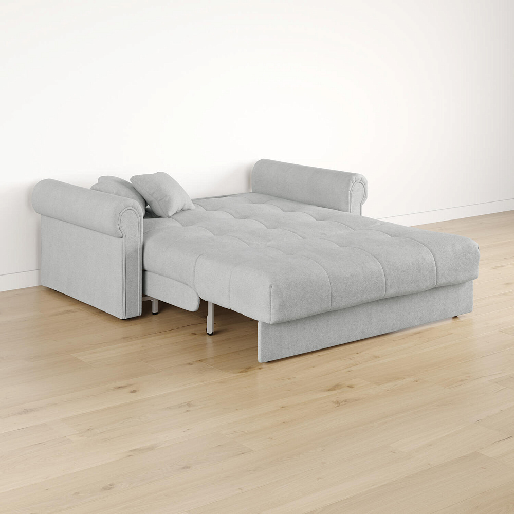 - Размер спального места — 147 х 204 см. Полноценная кровать подойдёт для комфортного сна на каждый день.
