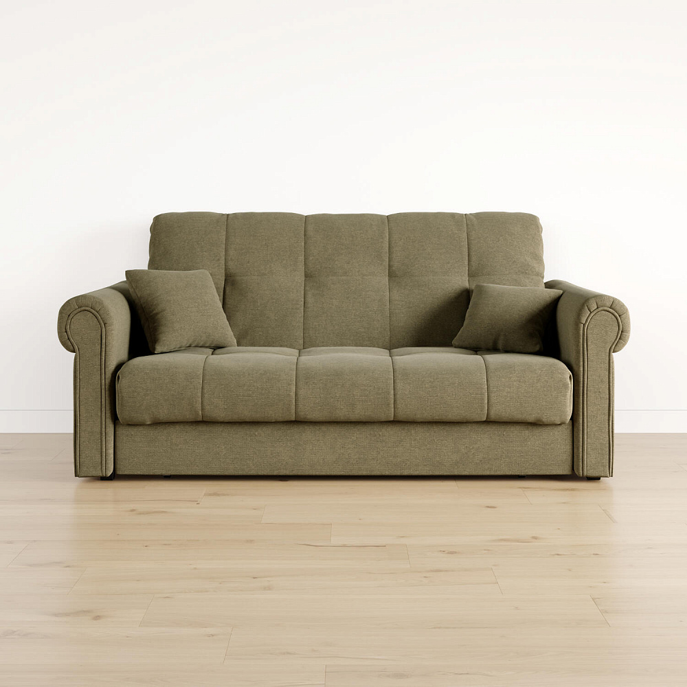 - Механизм трансформации «Аккордеон». Надёжный и простой в использовании механизм. Приподнимите сиденье и слегка потяните на себя, диван сам разложится.