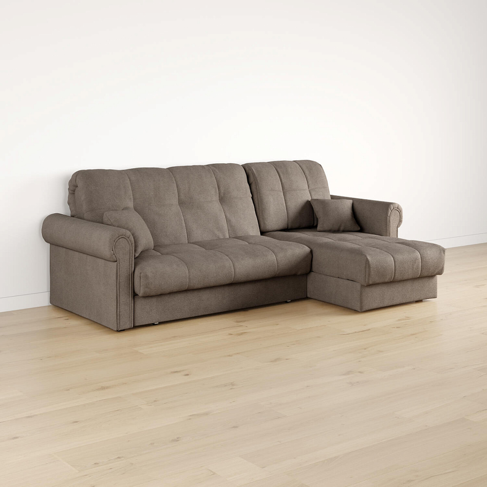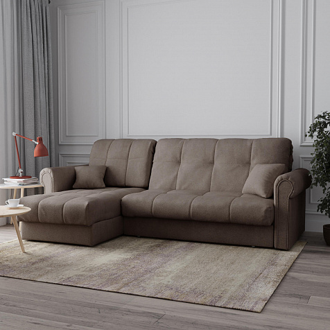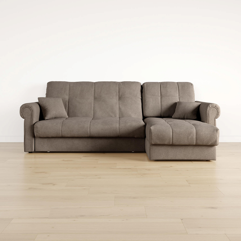 - Универсальный угол. Диван подстроится под условия помещения — оттоманка устанавливается как слева, так и справа.