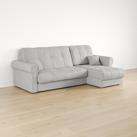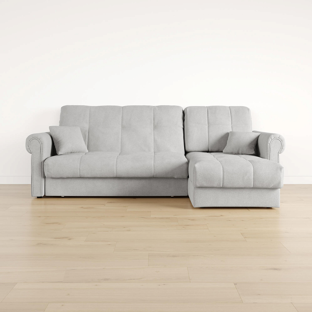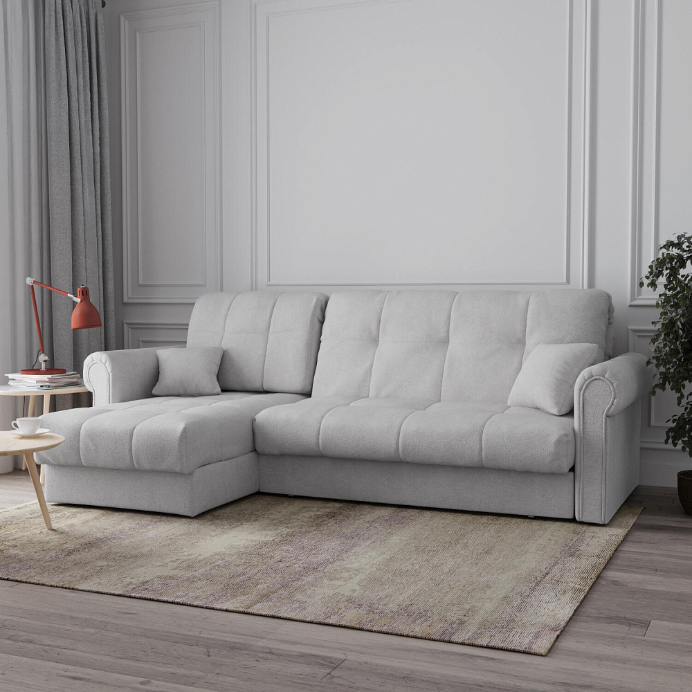 - Универсальный угол. Диван подстроится под условия помещения — оттоманка устанавливается как слева, так и справа.