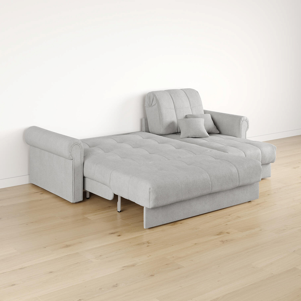 - Размер спального места — 147 х 204 см. Полноценная кровать подойдёт для комфортного сна на каждый день.