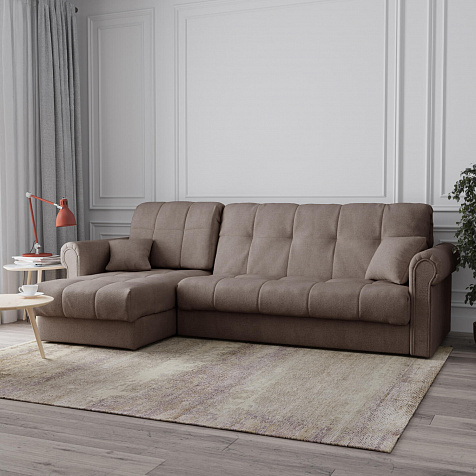 - Универсальный угол. Диван подстроится под условия помещения — оттоманка устанавливается как слева, так и справа.