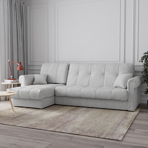 - Универсальный угол. Диван подстроится под условия помещения — оттоманка устанавливается как слева, так и справа.