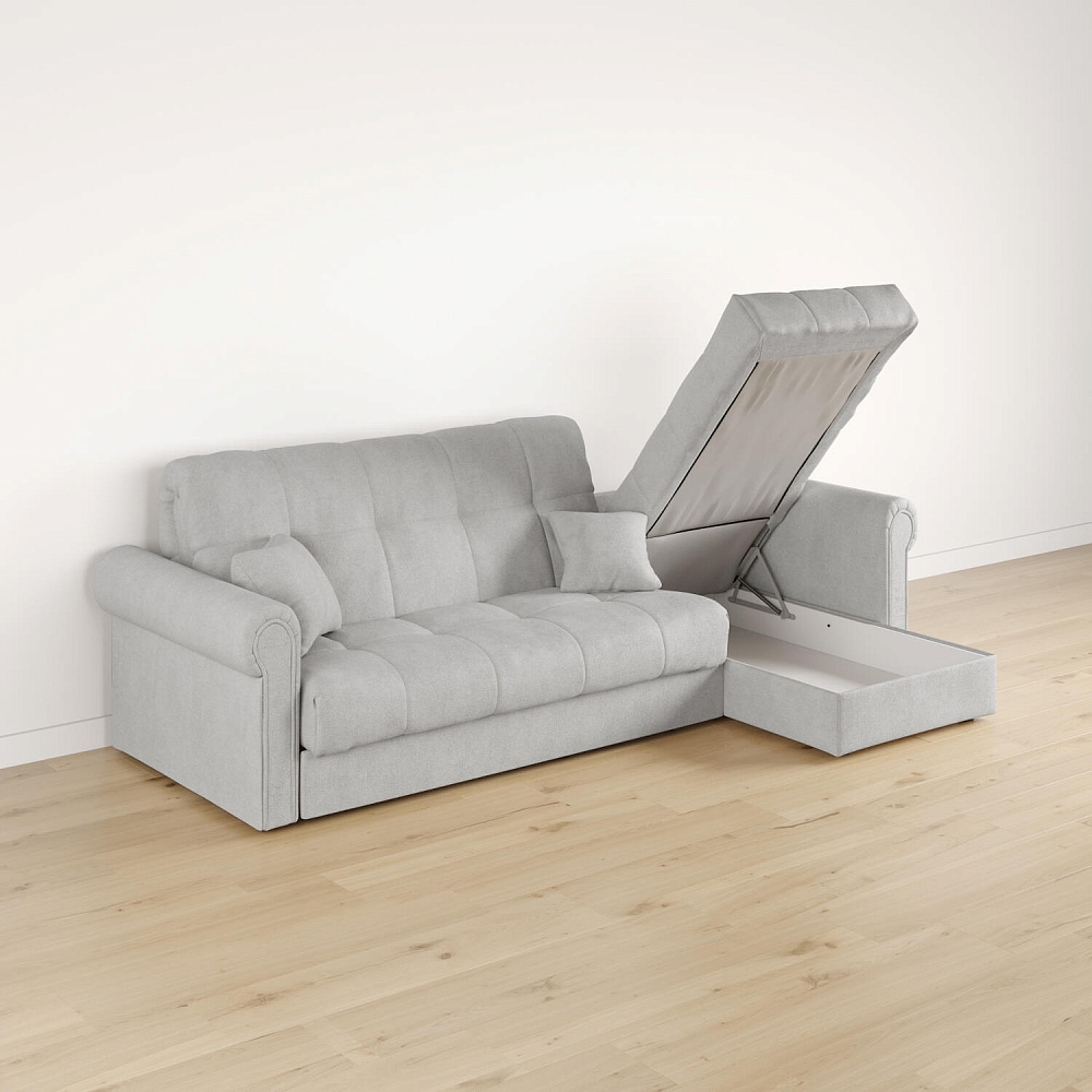 - Короб для белья. В оттоманке дивана скрыт просторный бельевой ящик, в котором можно разместить все необходимые постельные принадлежности.
