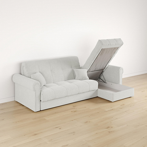 - Короб для белья. В оттоманке дивана скрыт просторный бельевой ящик, в котором можно разместить все необходимые постельные принадлежности.