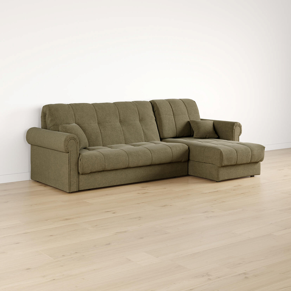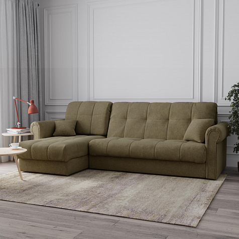 - Универсальный угол. Диван подстроится под условия помещения — оттоманка устанавливается как слева, так и справа.