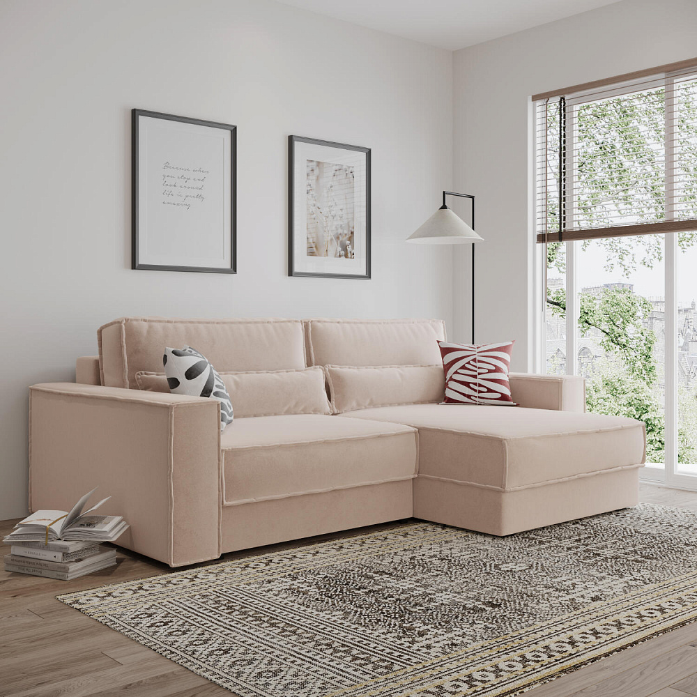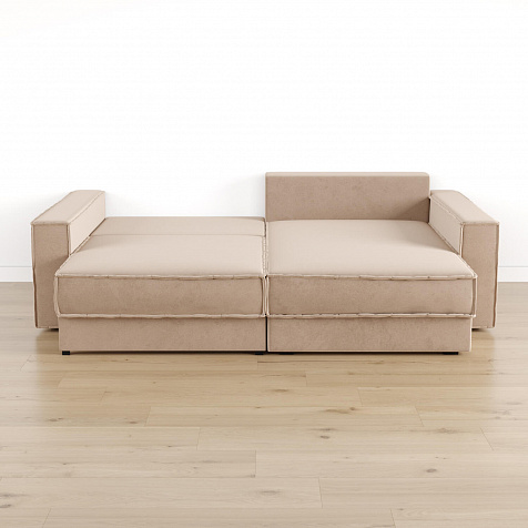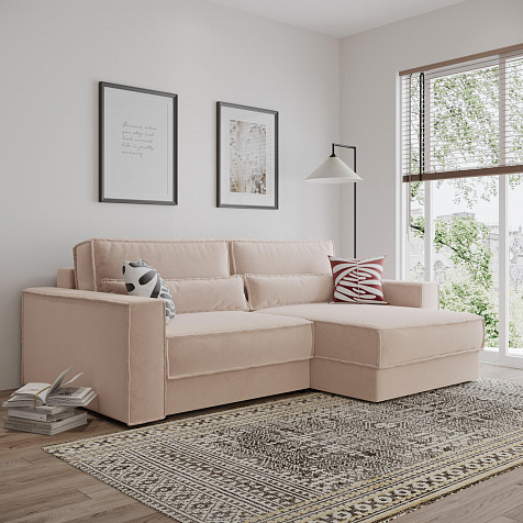Диван угловой «Сеул» с глубокой посадкой оснащён механизмом трансформации и большим бельевым коробом. Спинка дивана выполнена в обивочной ткани, что даёт возможность использовать его для зонирования комнаты. Одной из отличительных особенностей модели является блок независимых пружин, которые обеспечивают оптимальную ортопедическую поддержку тела во время отдыха и сна. Поэтому диван в разложенном виде служит не только гостевым вариантом, а становится полноценным спальным местом для ежедневного сна.