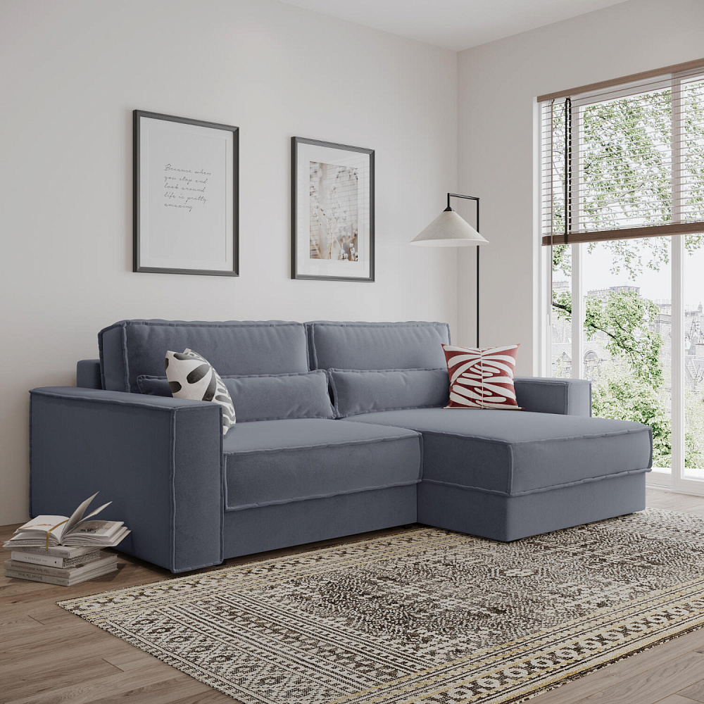 Диван угловой «Сеул» с глубокой посадкой оснащён механизмом трансформации и большим бельевым коробом. Спинка дивана выполнена в обивочной ткани, что даёт возможность использовать его для зонирования комнаты. Одной из отличительных особенностей модели является блок независимых пружин, которые обеспечивают оптимальную ортопедическую поддержку тела во время отдыха и сна. Поэтому диван в разложенном виде служит не только гостевым вариантом, а становится полноценным спальным местом для ежедневного сна.