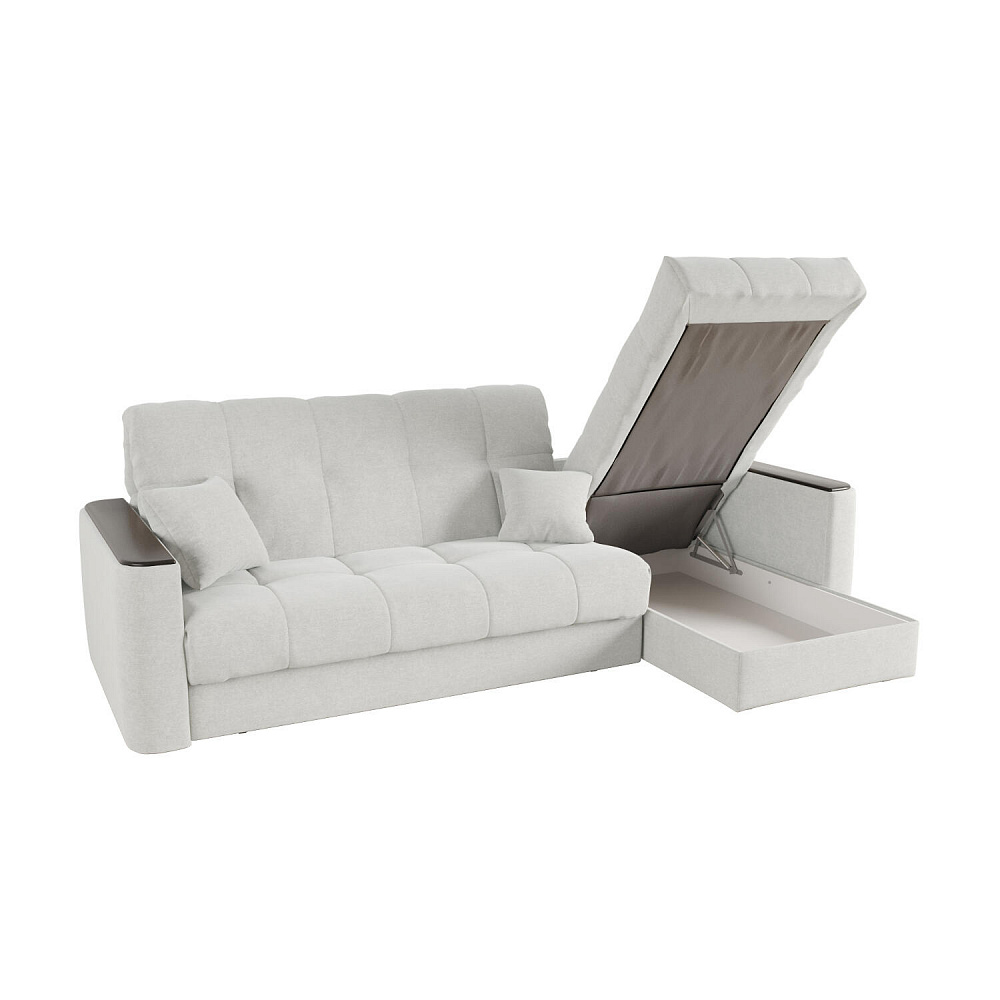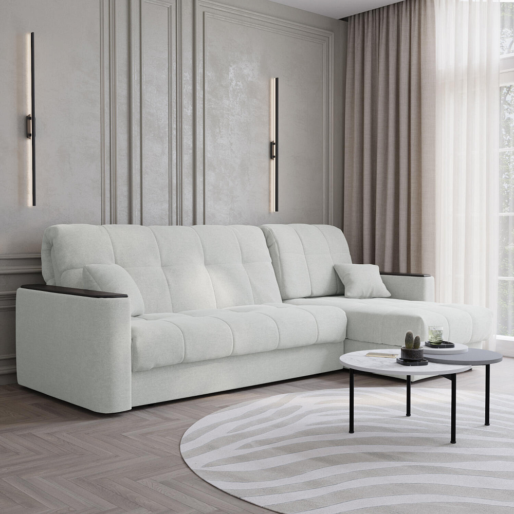 - Универсальный угол. Диван подстроится под условия помещения — оттоманка устанавливается как слева, так и справа.