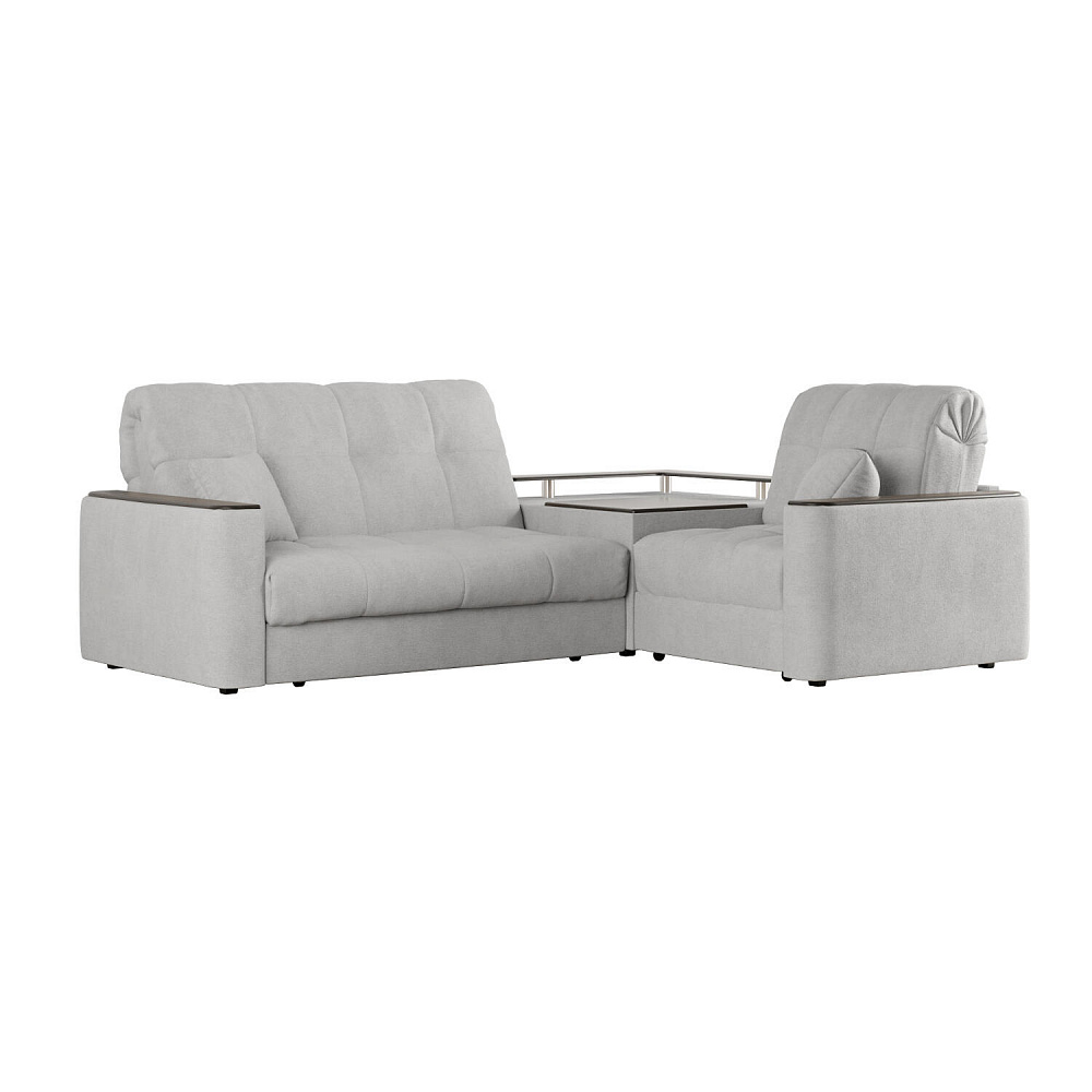 Диван угловой «Камелот» с баром станет главным местом для отдыха и приема гостей. Модель оснащена баром, на котором можно расположить еду и напитки во время просмотра фильмов и сериалов. Пропорциональные формы, плавные линии на сиденье и спинке подчеркивают лаконичный дизайн, поэтому диван подойдёт для любого современного интерьера. Диван создаст в комнате комфортную обстановку и придаст ей неповторимый вид.