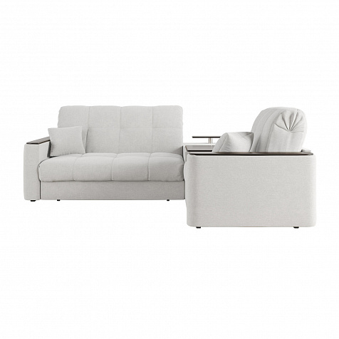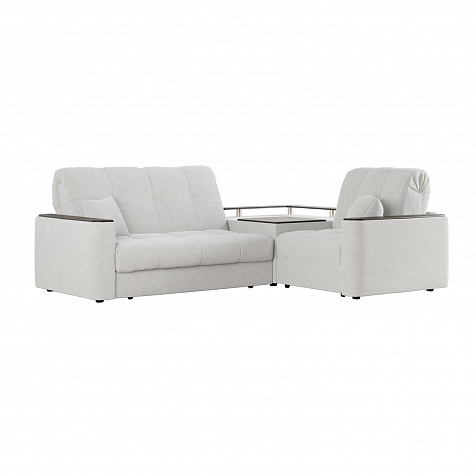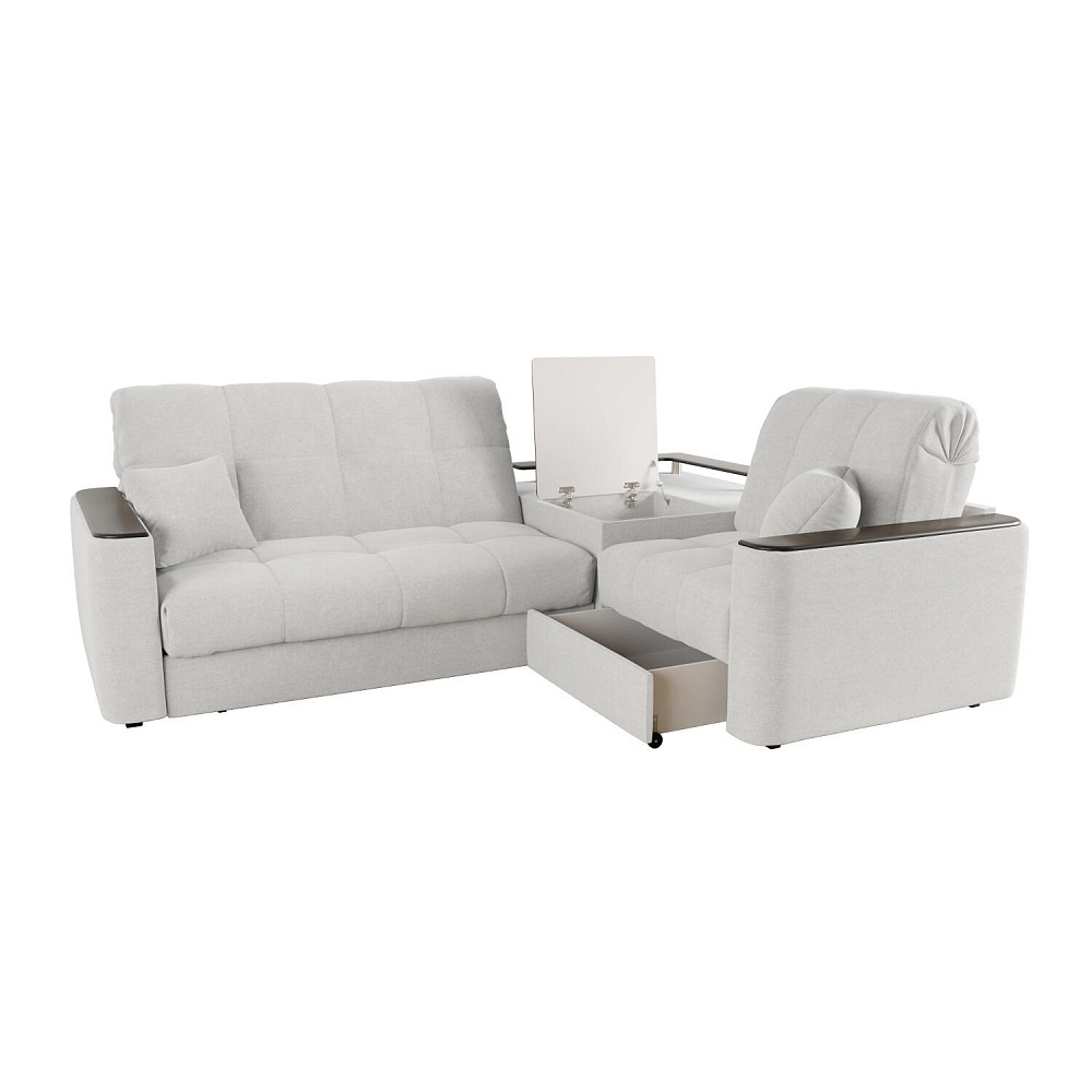 Диван угловой «Камелот» с баром станет главным местом для отдыха и приема гостей. Модель оснащена баром, на котором можно расположить еду и напитки во время просмотра фильмов и сериалов. Пропорциональные формы, плавные линии на сиденье и спинке подчеркивают лаконичный дизайн, поэтому диван подойдёт для любого современного интерьера. Диван создаст в комнате комфортную обстановку и придаст ей неповторимый вид.