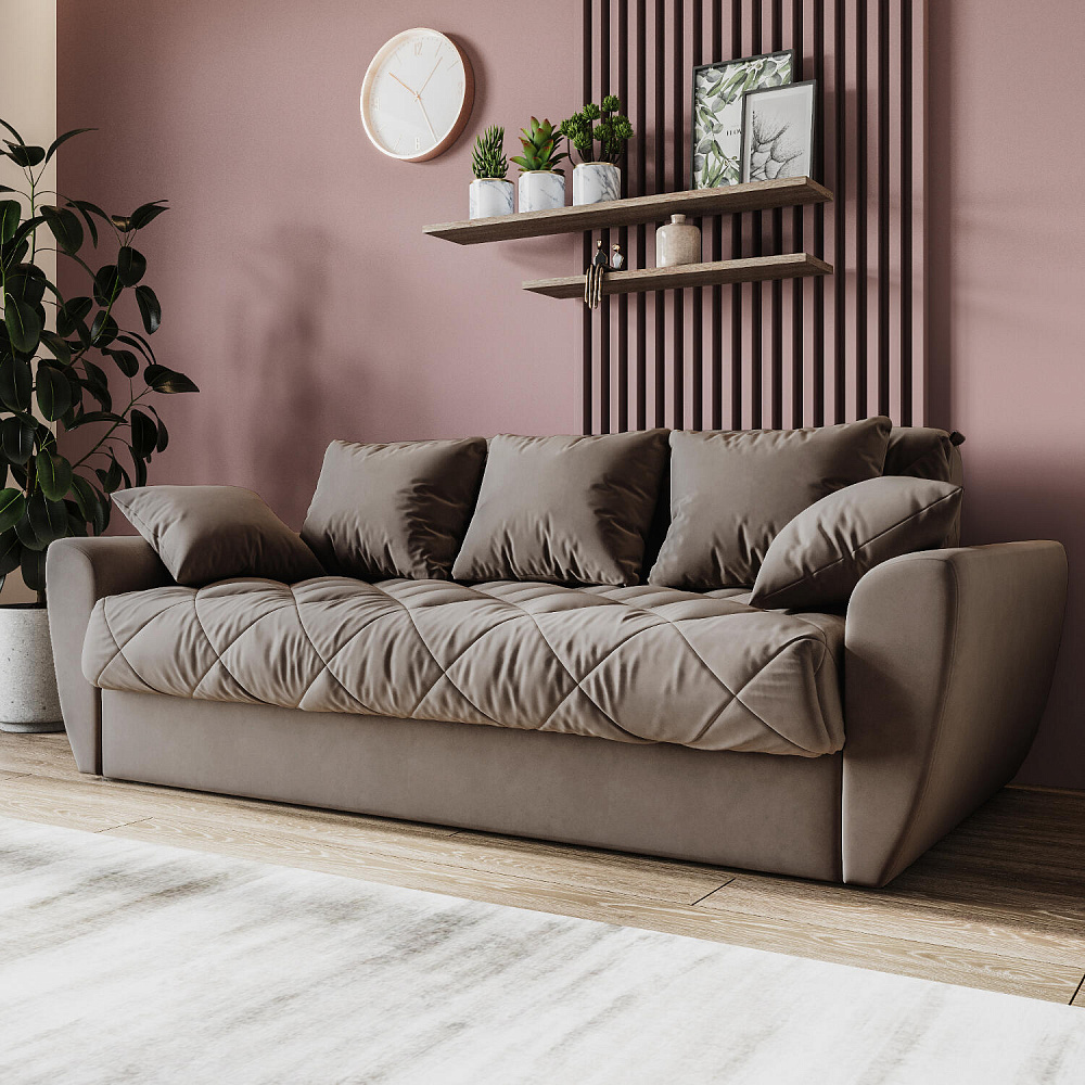 Прямой трехместный диван-кровать «Тэйлор» - это удобная и многофункциональная модель, которая великолепно вписывается в любой интерьер. Диван имеет сверхкомфортную глубокую посадку, спальное место для здорового отдыха и полноценного сна и встроенные вместительные ящики для белья. Глубину посадки легко регулировать с помощью больших приспинных и декоративных малых подушек для максимального удобного отдыха. Диван «Тэйлор» - это простота в использовании, надежность и безупречный комфорт.