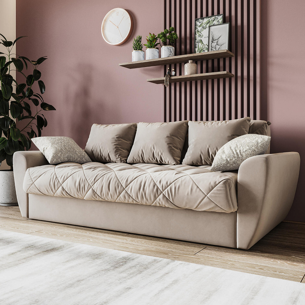 Прямой трехместный диван-кровать «Тэйлор» - это удобная и многофункциональная модель, которая великолепно вписывается в любой интерьер. Диван имеет сверхкомфортную глубокую посадку, спальное место для здорового отдыха и полноценного сна и встроенные вместительные ящики для белья. Глубину посадки легко регулировать с помощью больших приспинных и декоративных малых подушек для максимального удобного отдыха. Диван «Тэйлор» - это простота в использовании, надежность и безупречный комфорт.