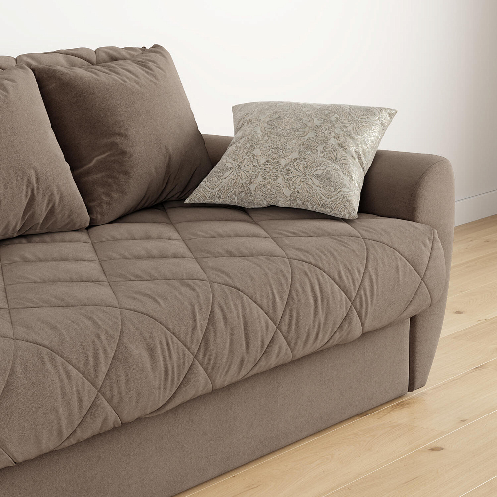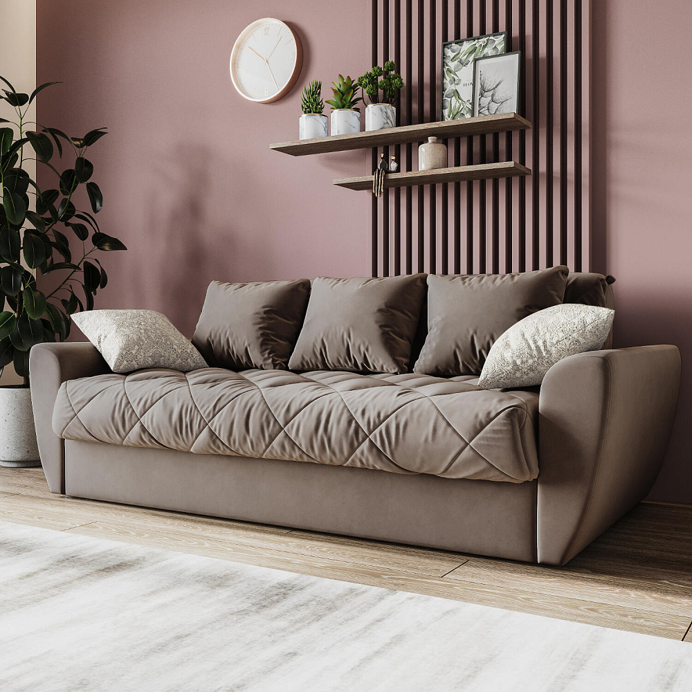 Прямой трехместный диван-кровать «Тэйлор» - это удобная и многофункциональная модель, которая великолепно вписывается в любой интерьер. Диван имеет сверхкомфортную глубокую посадку, спальное место для здорового отдыха и полноценного сна и встроенные вместительные ящики для белья. Глубину посадки легко регулировать с помощью больших приспинных и декоративных малых подушек для максимального удобного отдыха. Диван «Тэйлор» - это простота в использовании, надежность и безупречный комфорт.