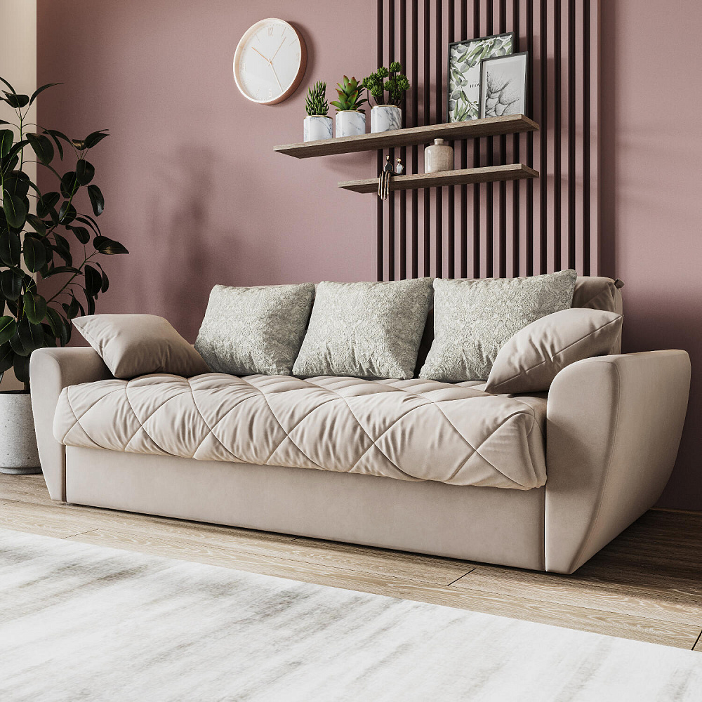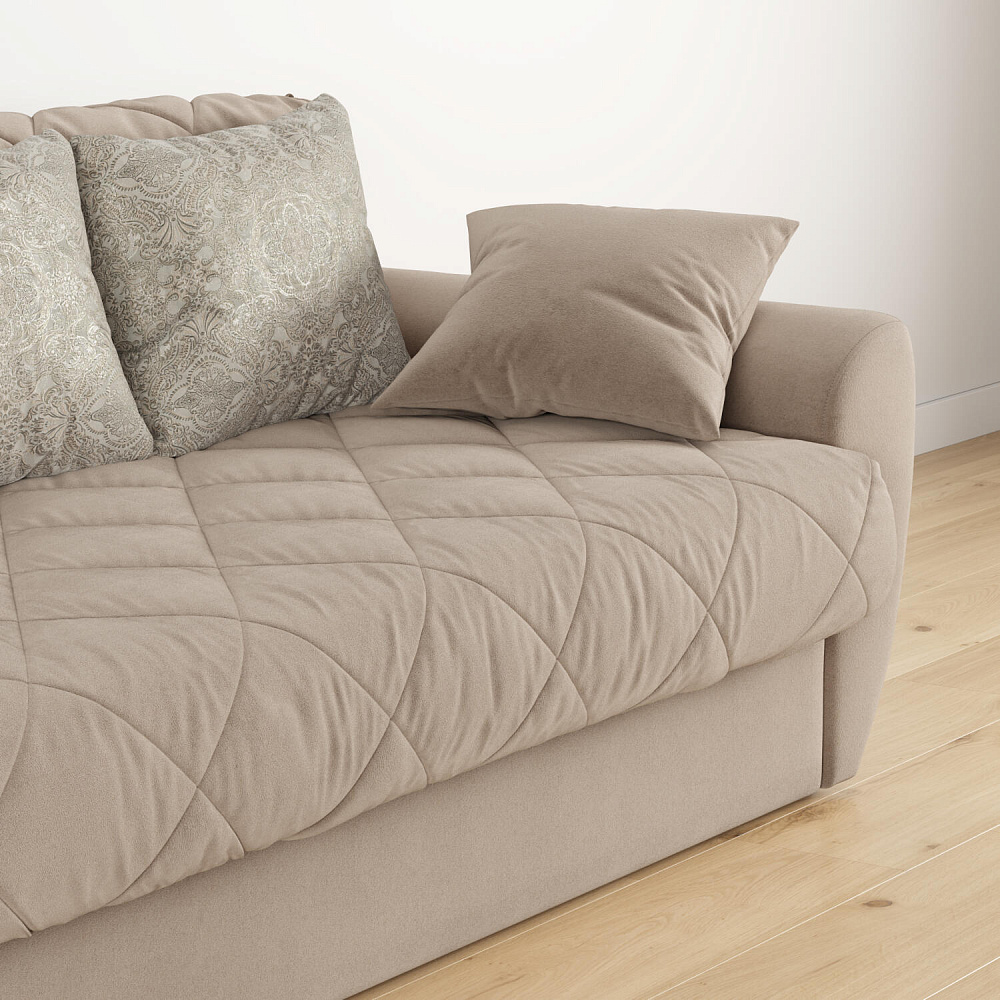 Прямой трехместный диван-кровать «Тэйлор» - это удобная и многофункциональная модель, которая великолепно вписывается в любой интерьер. Диван имеет сверхкомфортную глубокую посадку, спальное место для здорового отдыха и полноценного сна и встроенные вместительные ящики для белья. Глубину посадки легко регулировать с помощью больших приспинных и декоративных малых подушек для максимального удобного отдыха. Диван «Тэйлор» - это простота в использовании, надежность и безупречный комфорт.
